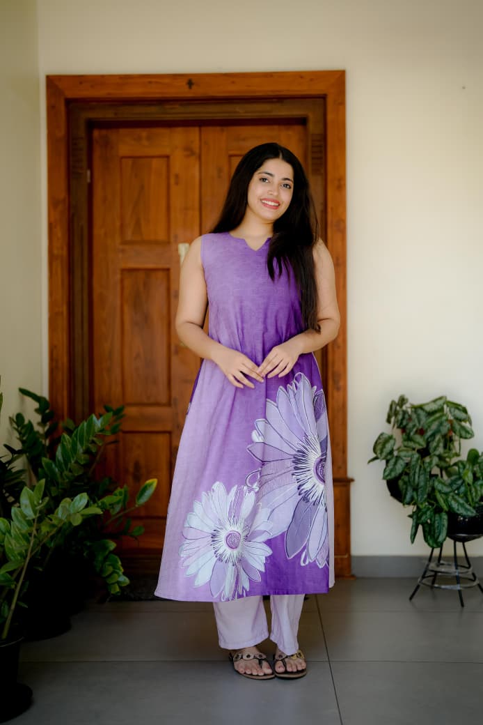 Lavender Bloom A line kurti set