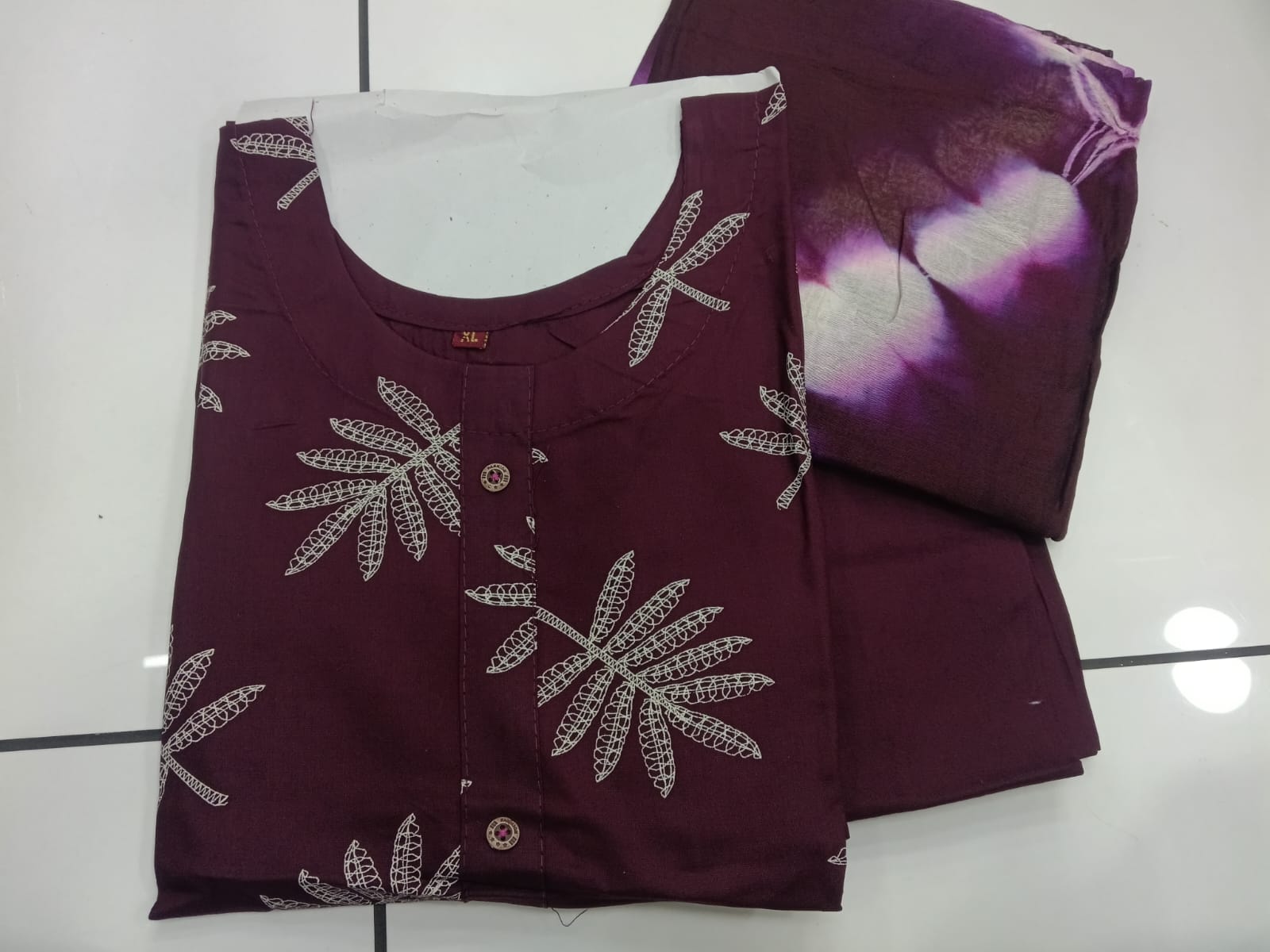 Elegant maroon printed kurti set designed for stylish and comfortable daily wear . Beautiful floral print give it a classy and trendy look. Comes with matching bottom piece for a complete outfit.